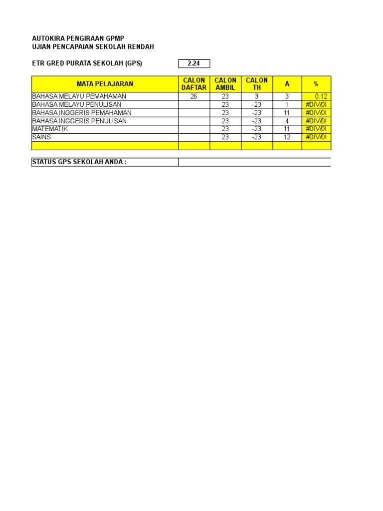 Cara Kira Gps Sekolah. Penilaian kendalian sekolah rendah pksr dan ujian. Contoh jadual Analisis TOV ETR dan GPMP.