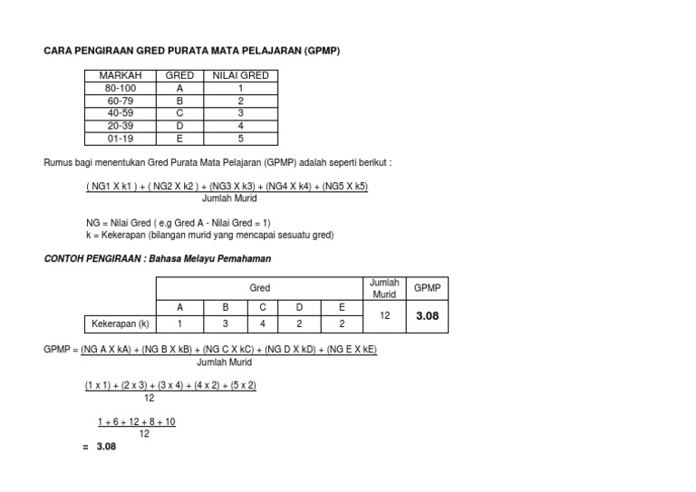 Cara Pengiraan Gred Purata Mata Pelajaran Gpmp Pdf
